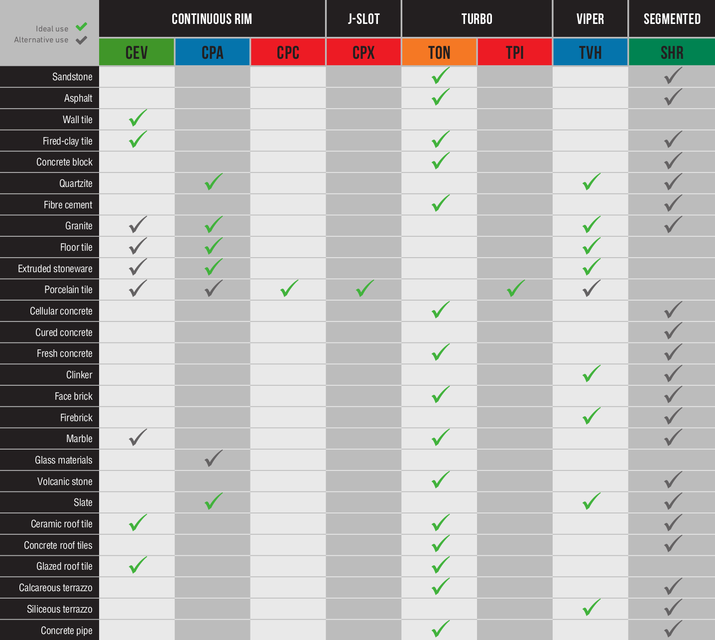 Please provide the following specifications of the product to be cut. The diamond blade has to be matched to the material that is being cut. Incorrect blade selection can result in excess wear or damage to a blade.